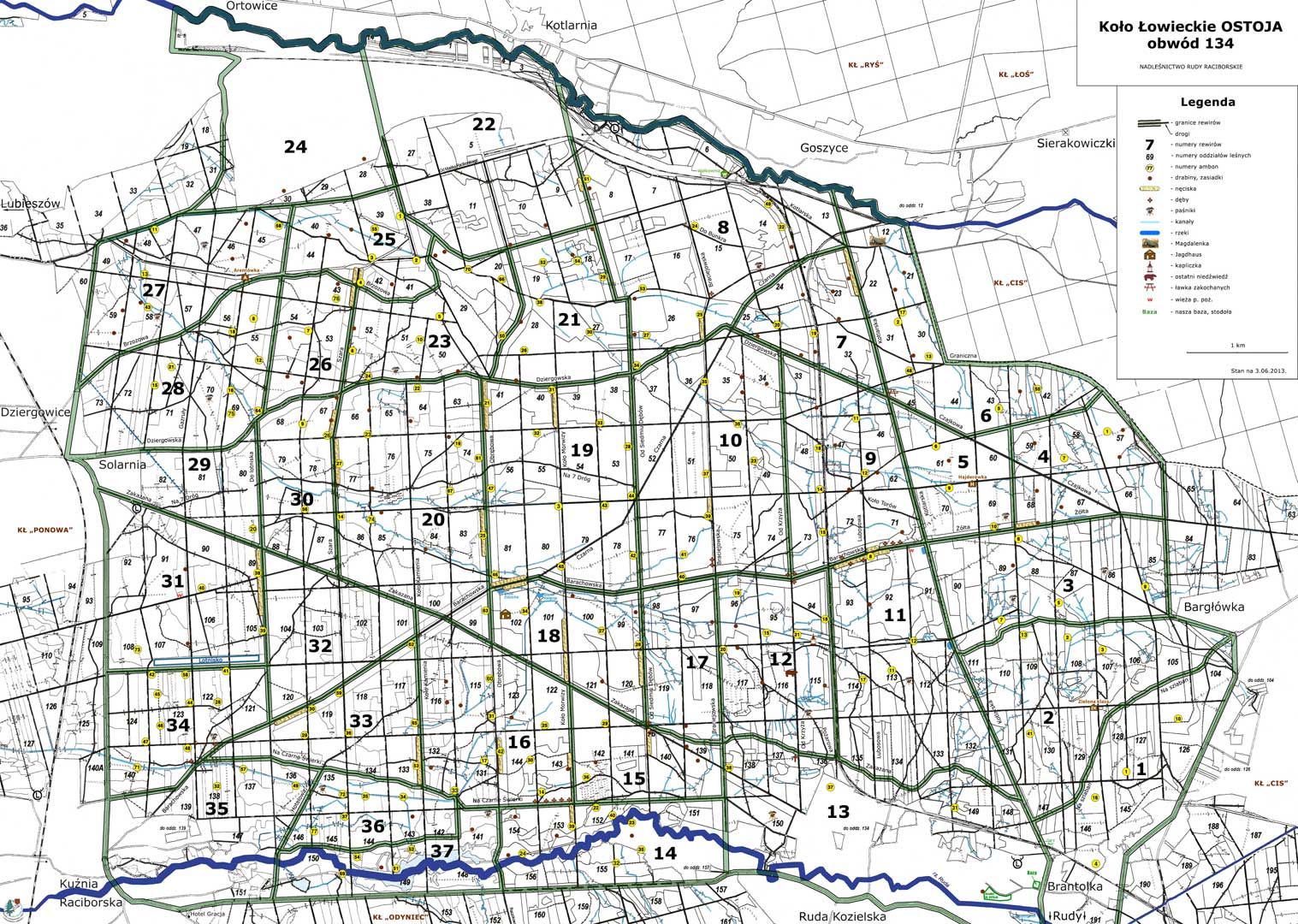 W tym samym okresie, dla drugiego obwodu zaczęliśmy stosować mapy wykorzystywane przez nadleśnictwo. Wymagana jest do tego zgoda nadleśnictwa oraz zgoda wykonawcy map. My, jako koło łowieckie, uzyskaliśmy dodatkowo w dyrekcji wykonawcy, zgodę na nieodpłatne wykorzystywanie.
